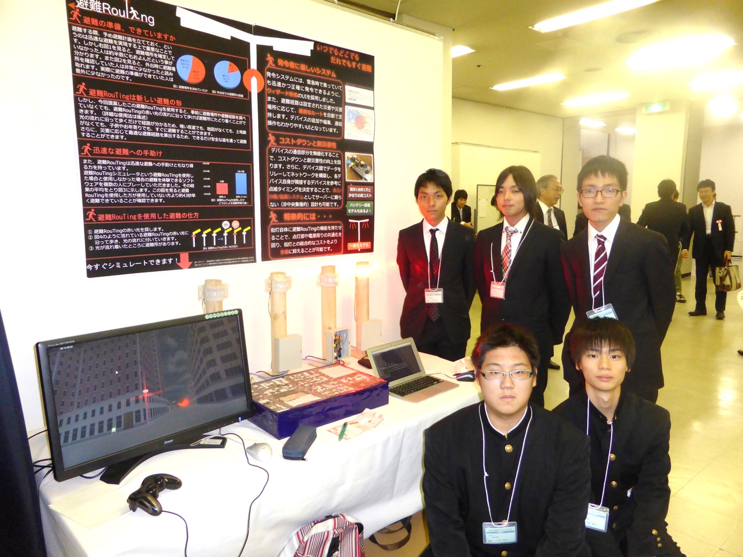 本校制御情報工学科3年生の中島暢哉さん、三田晧介さん、2年生の江島樹さん、