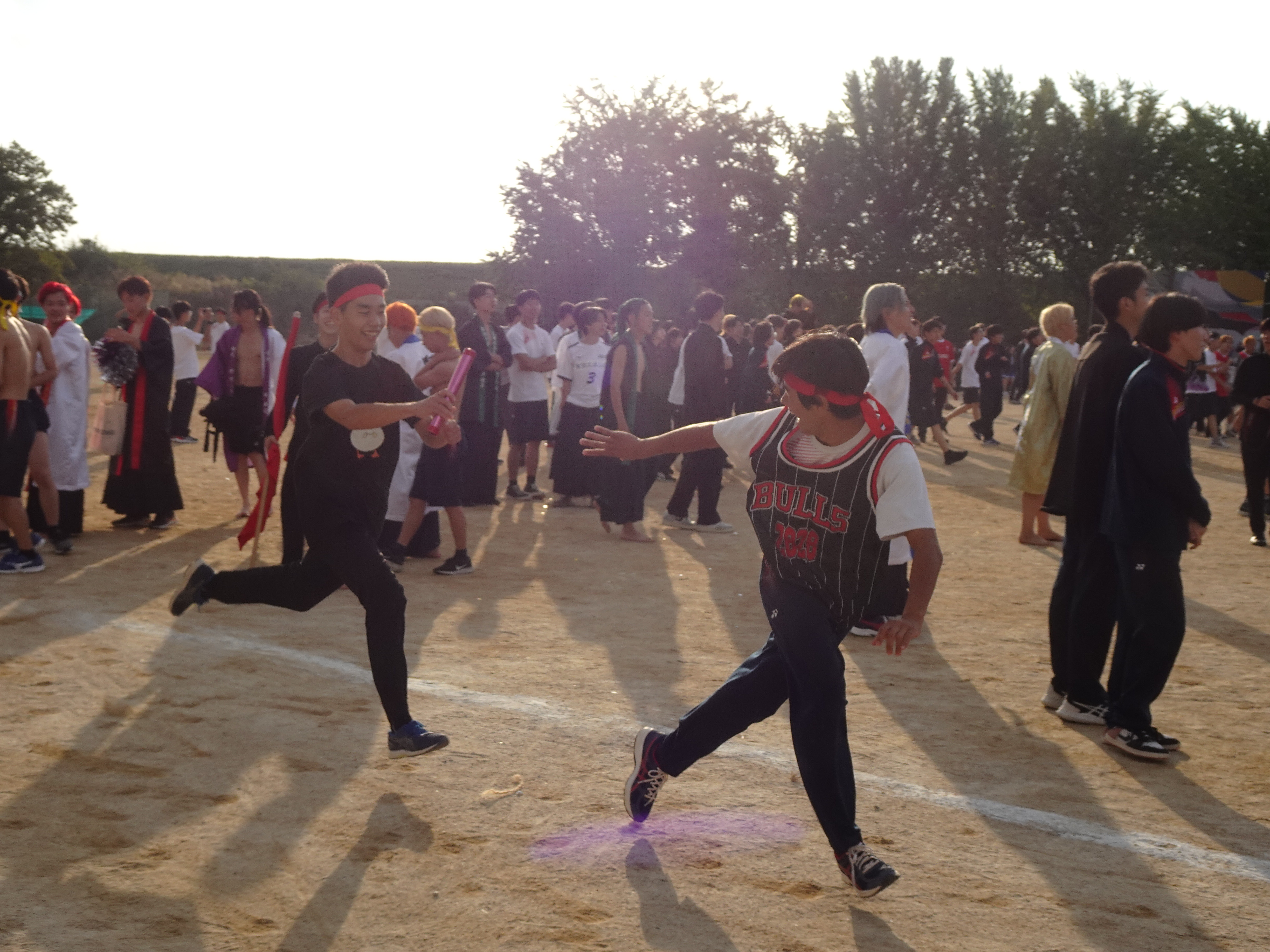 スウェーデンリレーやタイヤ取りなどの競技を通じて、各学科が一致団結し、優勝を目指します。