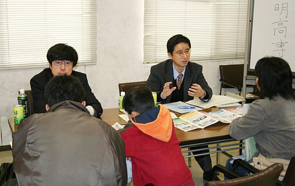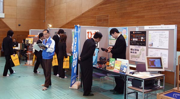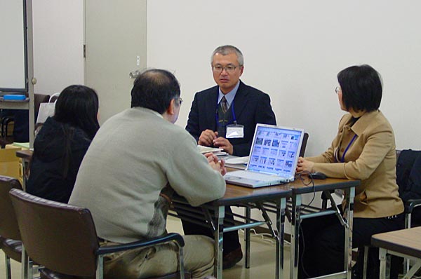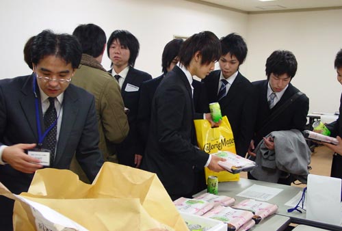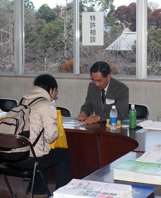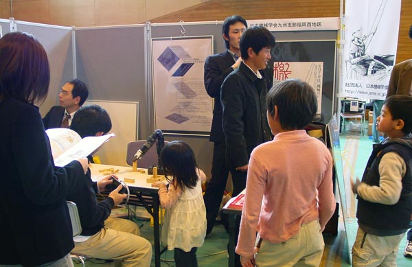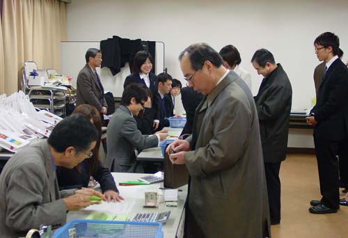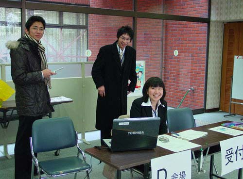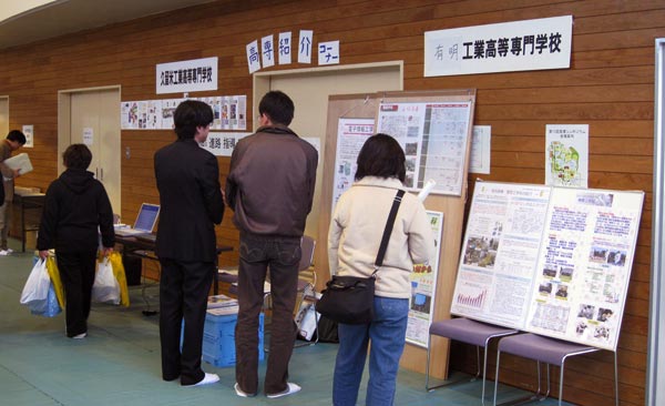 総合受付での参加登録。会場では久留米高専の専攻科生と本科4年・5年の学生総計***名が中心になって、お客さんの対応をしました。