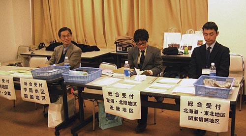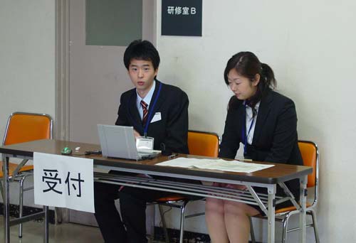 第1日目の研究発表は10の会場で並行して行われましたが、入り口の受付、講演会場のお世話など、学生が中心になって対応しました。