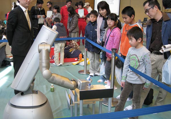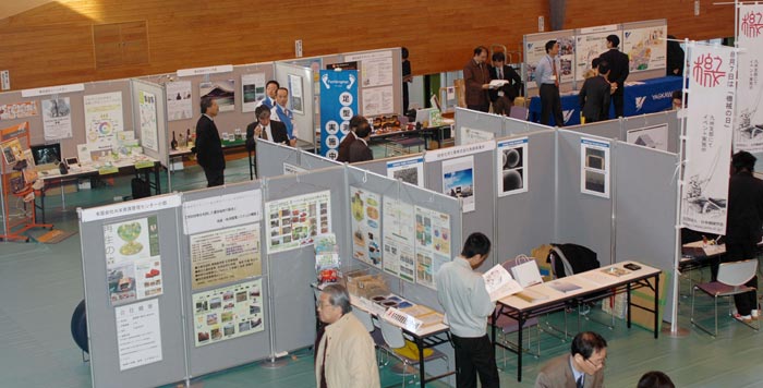 ポスタープレゼンテーション、ロボコン等の会場として、会期中もっとも賑わった勤労青少年ホームの入り口