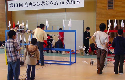 前日の1月25日、会場作りの作業をしました。写真はロボコン会場の準備