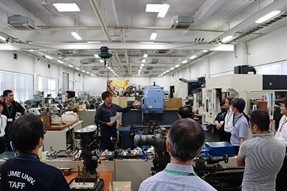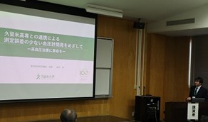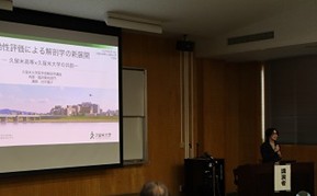 開会にあたり、久留米大学の内村学長からの挨拶があり、交流会は三部構成で行われました。始めに第一部として、本校の谷野教授および久留米大学の石竹教授による学校の紹介が行われました。続く第二部では、久留米大学の田平講師・友枝助教および本校の上田助教から、大学と高専間の連携の観点も含めた研究発表が行われ、引き続き、教育研究支援センター技術職員の案内により、ものづくり教育センターの見学が行われました。