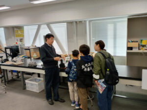 学科の学生数名がスタッフとして参加し,来場した子どもたちをはじめ来客者への説明や,展示モデルを動かしてデモするなど,色々と手伝ってくれていました。
