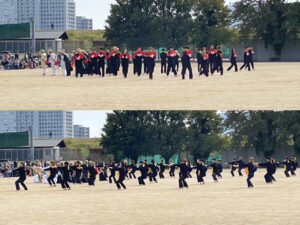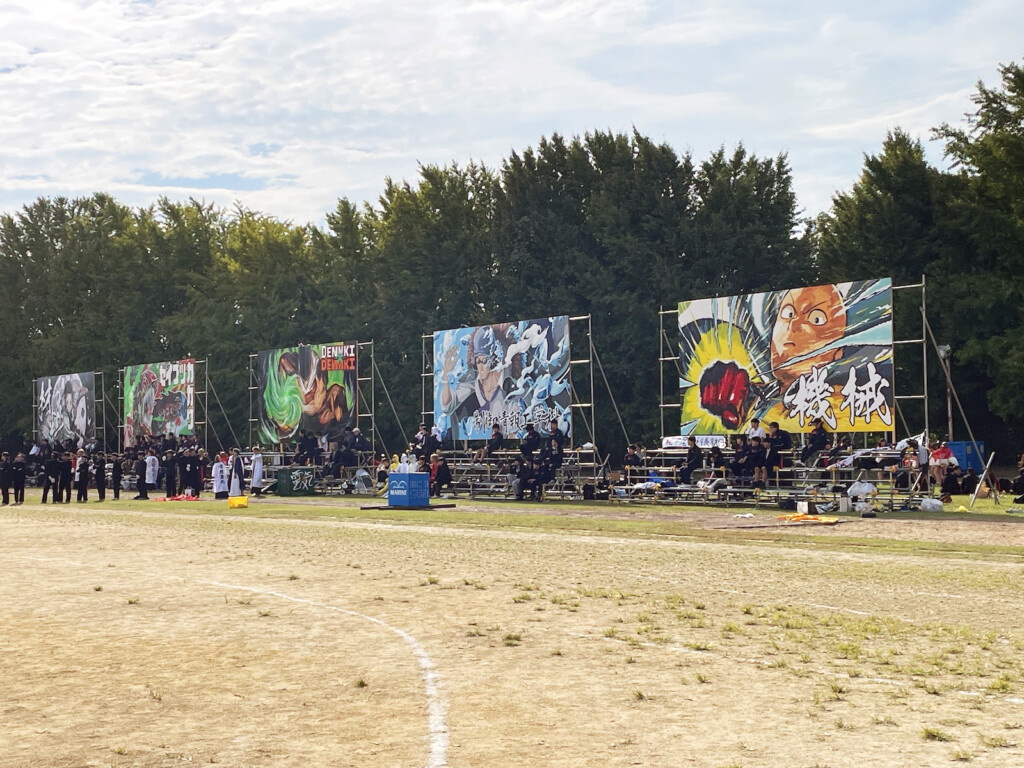 体育祭では,リレーなどの各競技に加え,演舞,看板の総合点が競われました。
