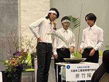 出場したのは、制御情報工学科2年・佐々木隼輔さん、電気電子工学科2年・中村泰雅さん、生物応用化学科2年・黒岩毅琉さんによるチーム「笹竹隊」です。全国大会では、3名が一人10分ずつ担当するリレー形式で1つの作品を制作しました。全国大会で唯一の男子チームとして注目を集め、明るくテンポのよいプレゼンテーションと力強い作品で会場を大いに魅了しました。