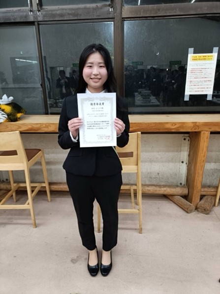 12月13日(土)に九州大学大学院総合理工学府で行われた2025年度日第67回 日本顕微鏡学会 九州支部集会・学術講演会にて、専攻科物質工学専攻1年生の白石よしのさんが優秀発表賞を受賞しました。発表タイトルは「液中におけるナノ粒子TEM観察に向けたグラフェン液体セル作製条件の検討」です。